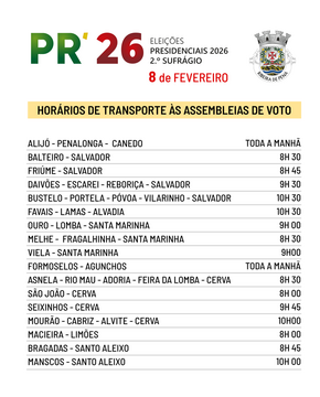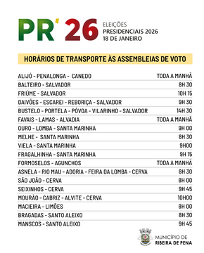 ELEIÇÕES PRESIDENCIAIS 2026 - HORÁRIOS DE TRANSPORTE ÀS ASSEMBLEIAS DE VOTO