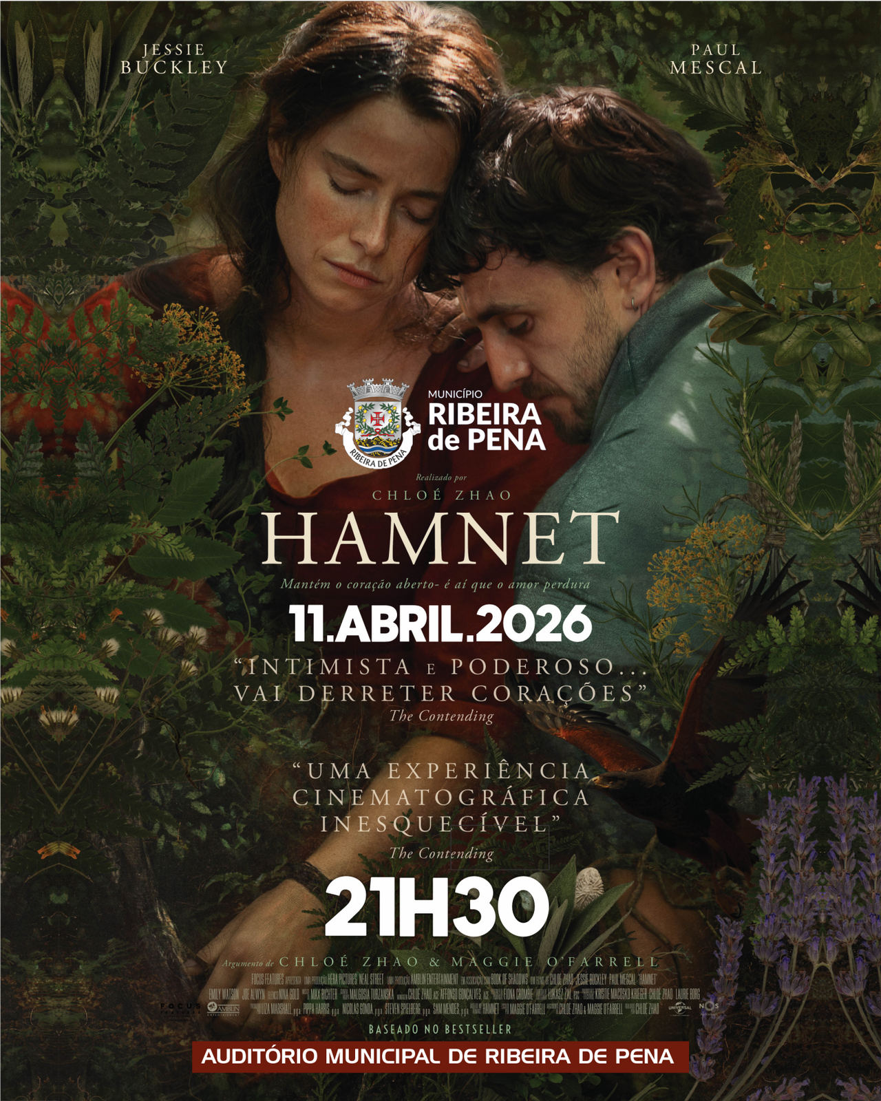 O Cinema Municipal de Ribeira de Pena apresenta a aguardada estreia de "Hamnet", com exibição marcada para o dia 11 de abril, às 21h30, no Auditório Municipal de Ribeira de Pena.