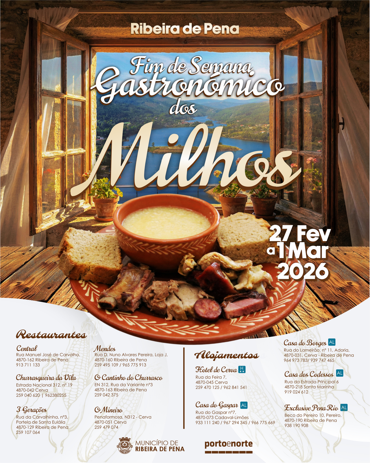 Nos dias 27 de fevereiro a 1 de março, convidamo-lo a redescobrir os sabores que aquecem a alma. Ribeira de Pena volta a honrar a sua herança culinária com mais uma edição do Fim de Semana Gastronómico dos Milhos.