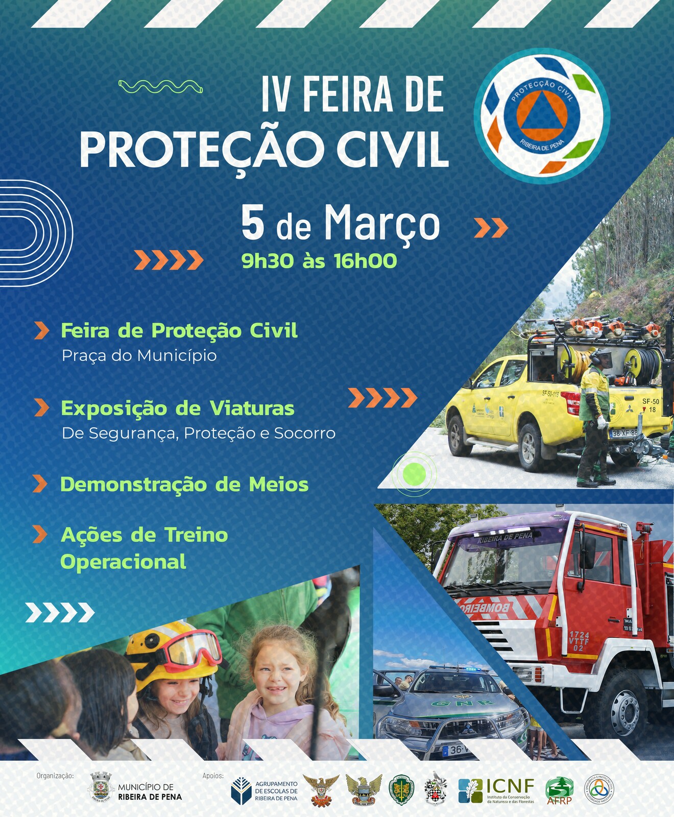 O Município de Ribeira de Pena vai realizar, no dia 5 de março, das 9h30 às 16h00, na Praça do Município, a IV Feira de Proteção Civil.