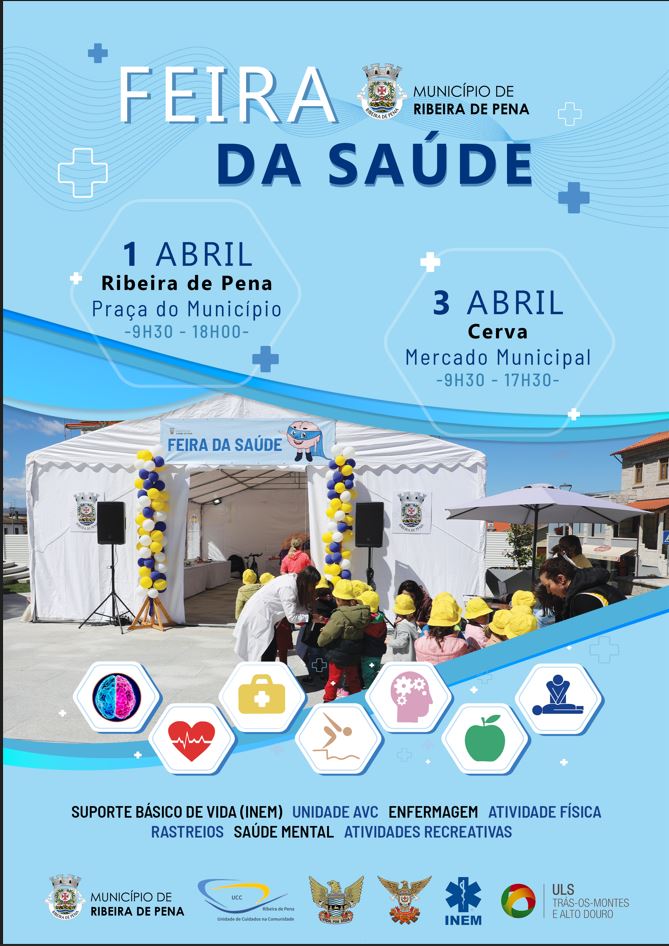 O Município de Ribeira de Pena vai realizar a terceira edição da Feira da Saúde, um evento dedicado à promoção do bem-estar e da qualidade de vida da comunidade. A iniciativa terá lugar no dia 1 de abril, na Praça do Município, em Ribeira de Pena, e no dia 3 de abril, no Mercado Municipal, em Cerva.